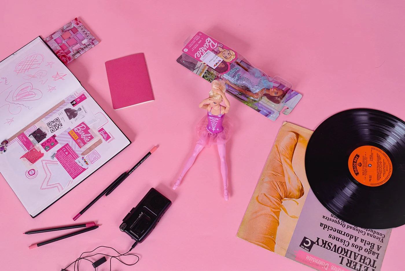 Os elementos visuais usados nas fotos como o Sketchbook, Barbies, Zines e Vinis são parte do acervo pessoal de Pedro e contam a história que guia todo o projeto.